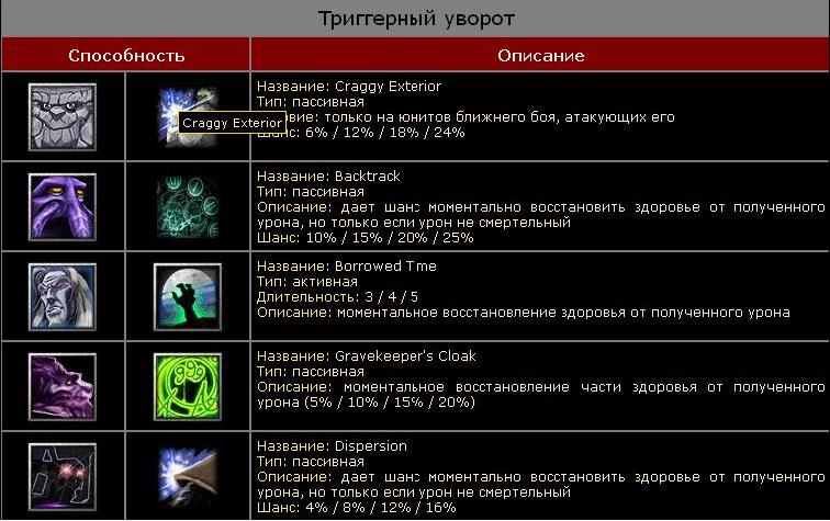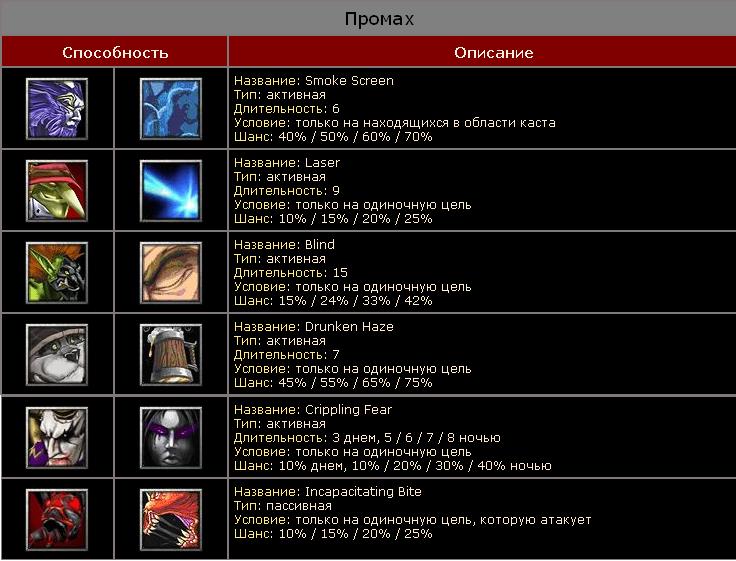 Существует 5 разновидностей способов избежать физического урона при атаке героя противником: 1. Evasion (уворот) 2. Miss (промах) 3. Terrain Miss (промах из-за рельефа) 4. Triggered Evasion (триггерный уворот) Terrain Miss. Если юнит находится на возвышенности, а противник, который его атакует, - в низине, то у врага появляется шанс промахнуться - 25%. Все эти 4 типа складываются друг с другом, но не с себеподобными. Среди однотипных всегда работает больший шанс. Формула конечного шанса избежать физического урона: P = 1 - (1 - E) x (1 - M) x (1 - TM) x (1 - TE) 5. Others (другой) Others. Позволяют избежать урона способом, не имеющего шанс. <==нажми <==нажми <==нажми